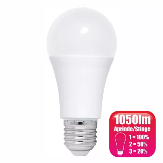 Bec LED dimabil de la intrerupator, model glob A60, 12W=100W, 6400k, lumina rece
