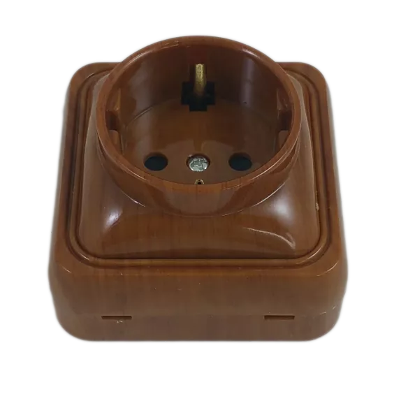 Priza simpla, Mini, nuanta Mahon, cu IP20. Montaj aparent.
